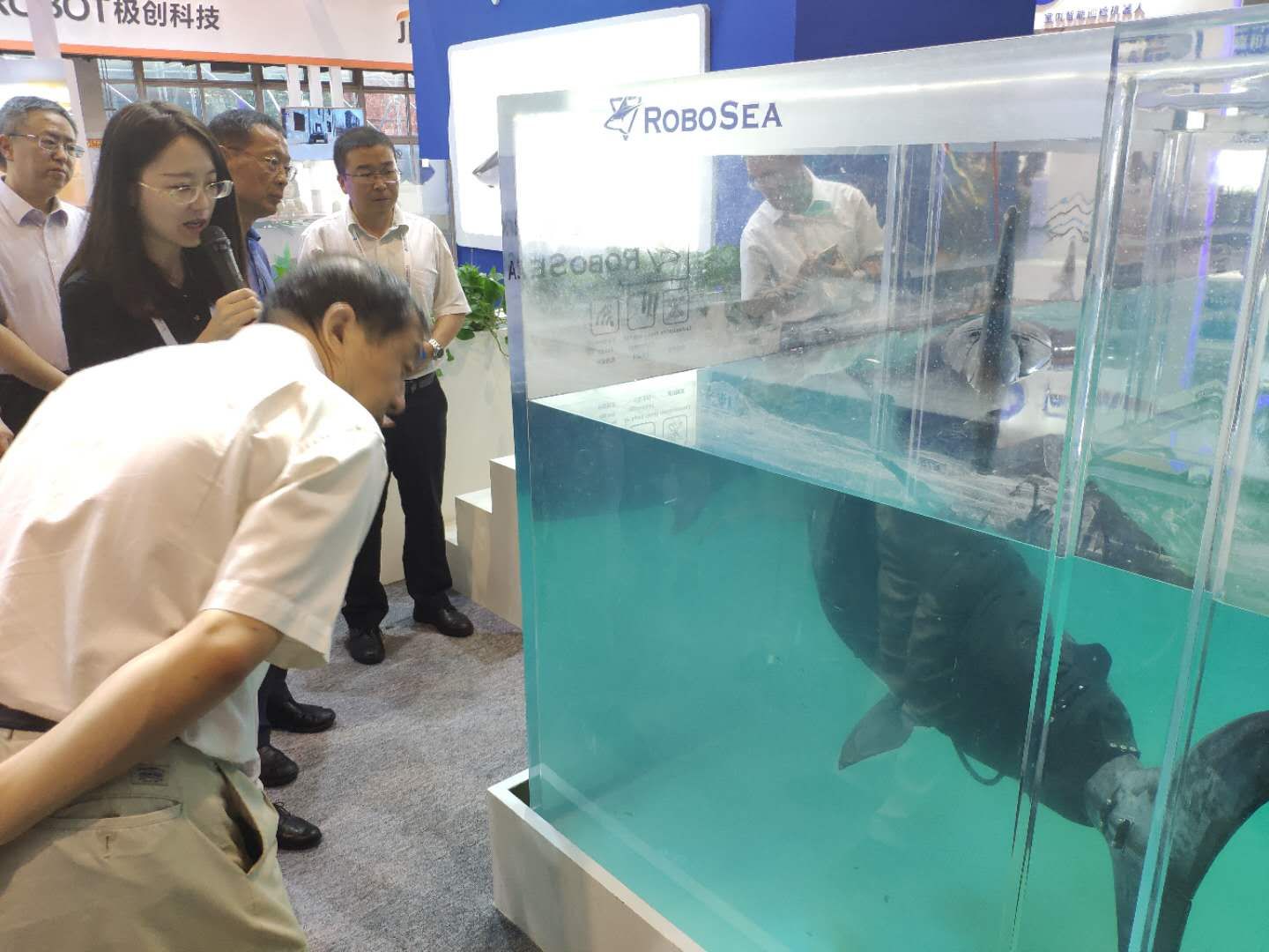 下午,市人大财经委张主任来到博雅工道ROBOSEA展位,张主任听取了博雅工道联合创始人对公司水下机器人产品的介绍,参观并亲身体验了各色ROBOSEA消费级系列产品,且对仿生鲨鱼机器人难掩喜爱之情。